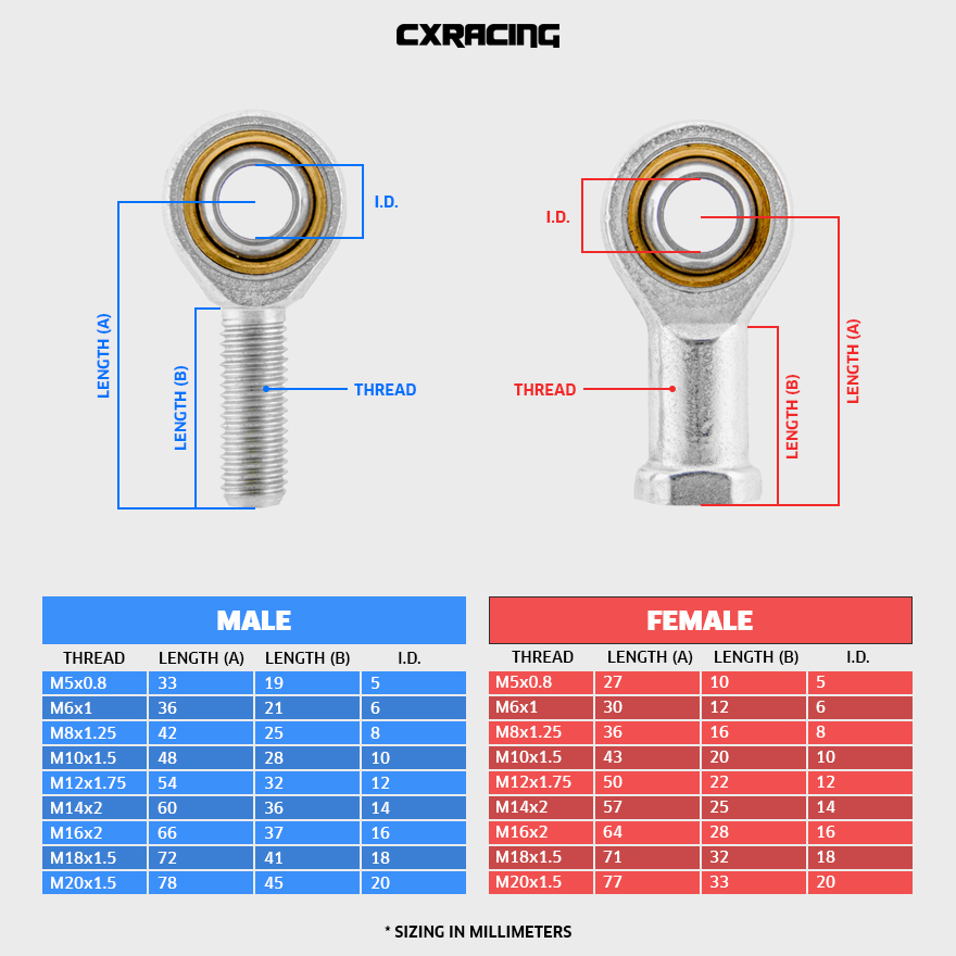 CXRacing High Strength Heim Rose Ball Joint Rod End, Zinc-Plated Carbon Steel, with Copper Alloy Bushing.
